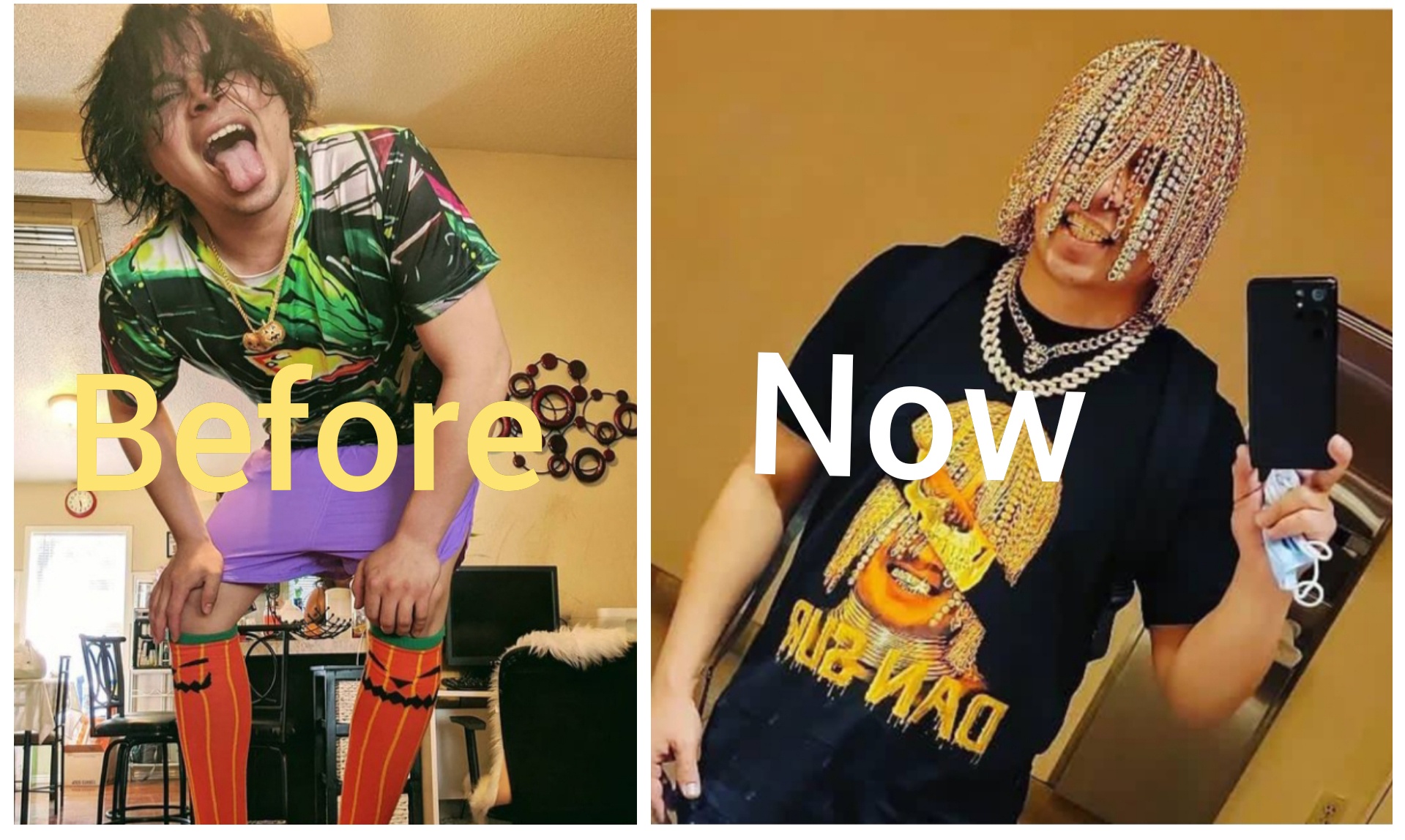 In series of bizarre clips that have. Another week another rapper doing the most. The 23-year-old reggaeton artist has taken to his Instagram and TikTok accounts to flaunt his numerous chains which have replaced his natural hair to his rapidly rising.